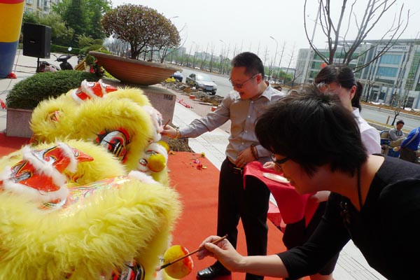 堂總和丁總為舞獅點金,寓意江寧旗艦店開業(yè)大吉