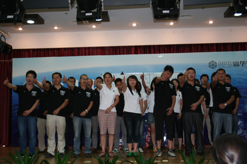 這次股東大會上,錦華的金牌培訓師——主材部曹總,給大家帶來了三個拓展游戲:五張撲克大小PK、模仿不走樣、數數字;帶來現場歡樂的同時,讓所有的人都學會反思和總結;團隊的精神得到充分的體現?;窗卜止镜氖袌鼋浝硗踔静ㄕf,“在南京大區,感受到了溫暖,有了回家的感覺。”這就是集體精神的魅力所在。