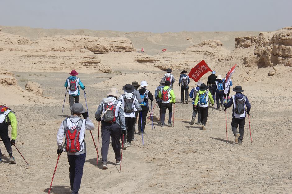▲從堿泉子到火燒湖,大漠戈壁50公里,兩天一夜徒步遠征,伙伴們無一放棄,以堅強的意志完美抵達終點
