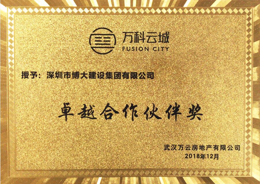 裝飾與幕墻平分秋色,博大建設集團憑借過硬的工程質量、嚴格的工期保障、全心全意的服務,與招商蛇口建立了長期合作關系,裝飾類和幕墻類同時榮獲招商蛇口“2018年度優秀新供應商獎”。