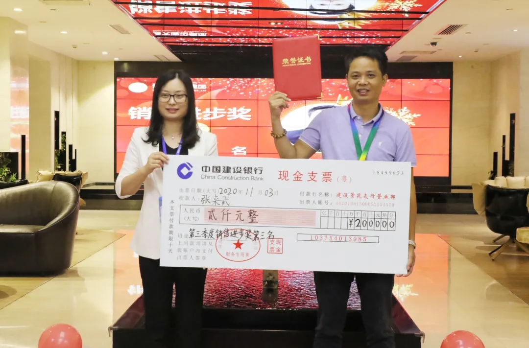 大會還頒發了第三季度銷售進步獎前三名及銷售冠軍。成績的背后是博大的狼性團隊和每一個充滿激情、奮力拼搏的博大人,博大對先進者給予充分的認可和獎勵,對他們優秀成果予以及時的回報。