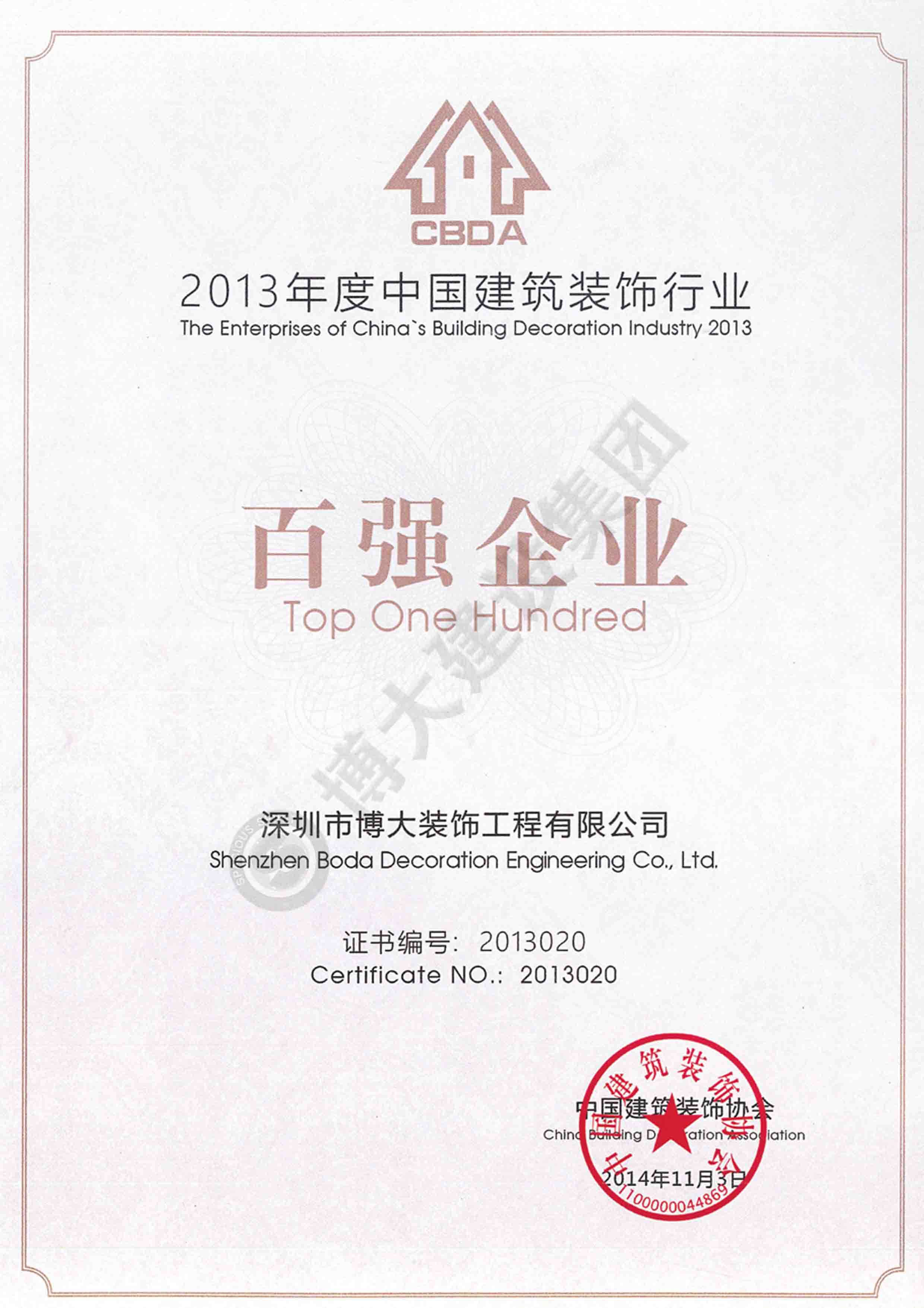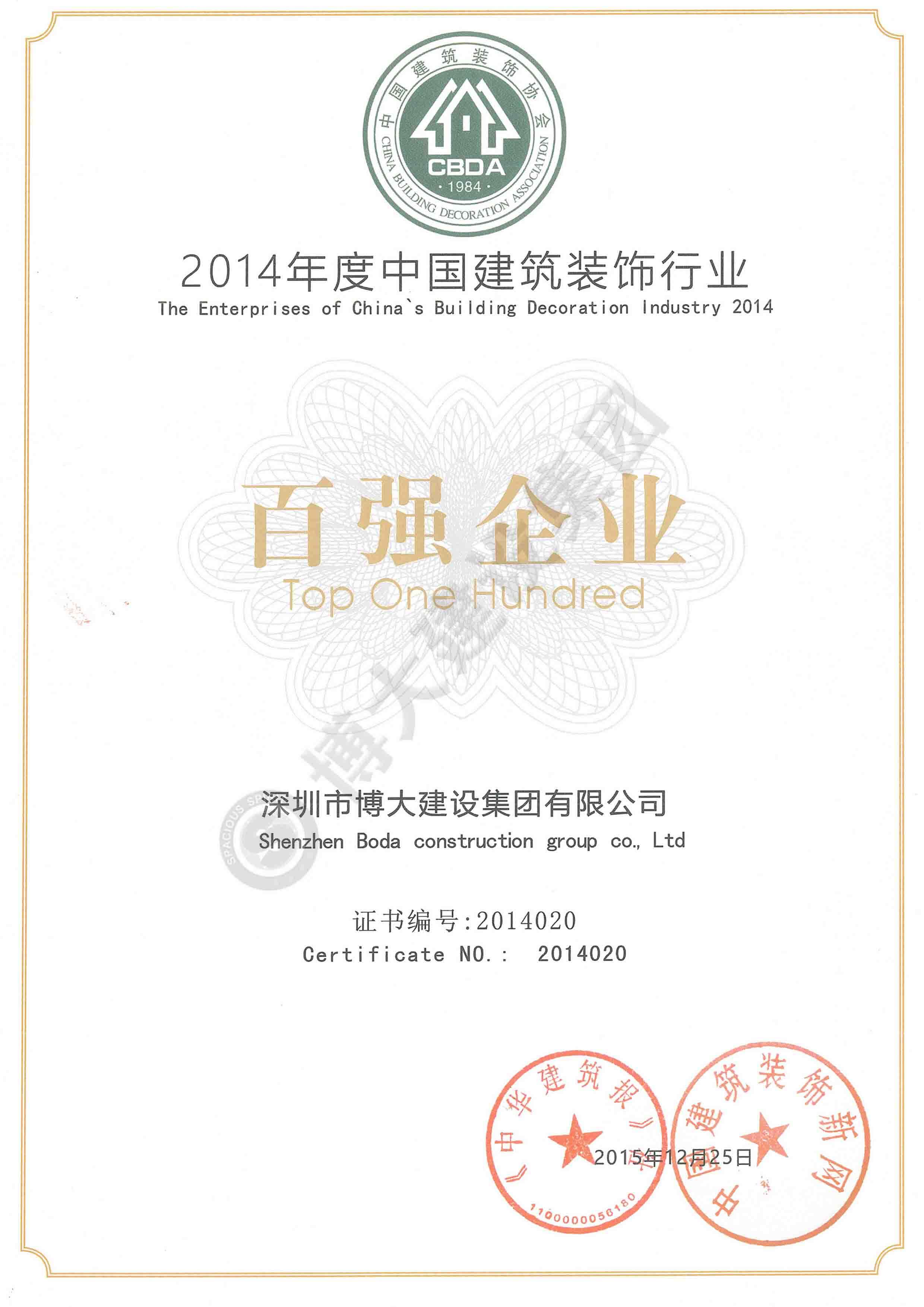 2014年度中國建筑裝飾百強企業