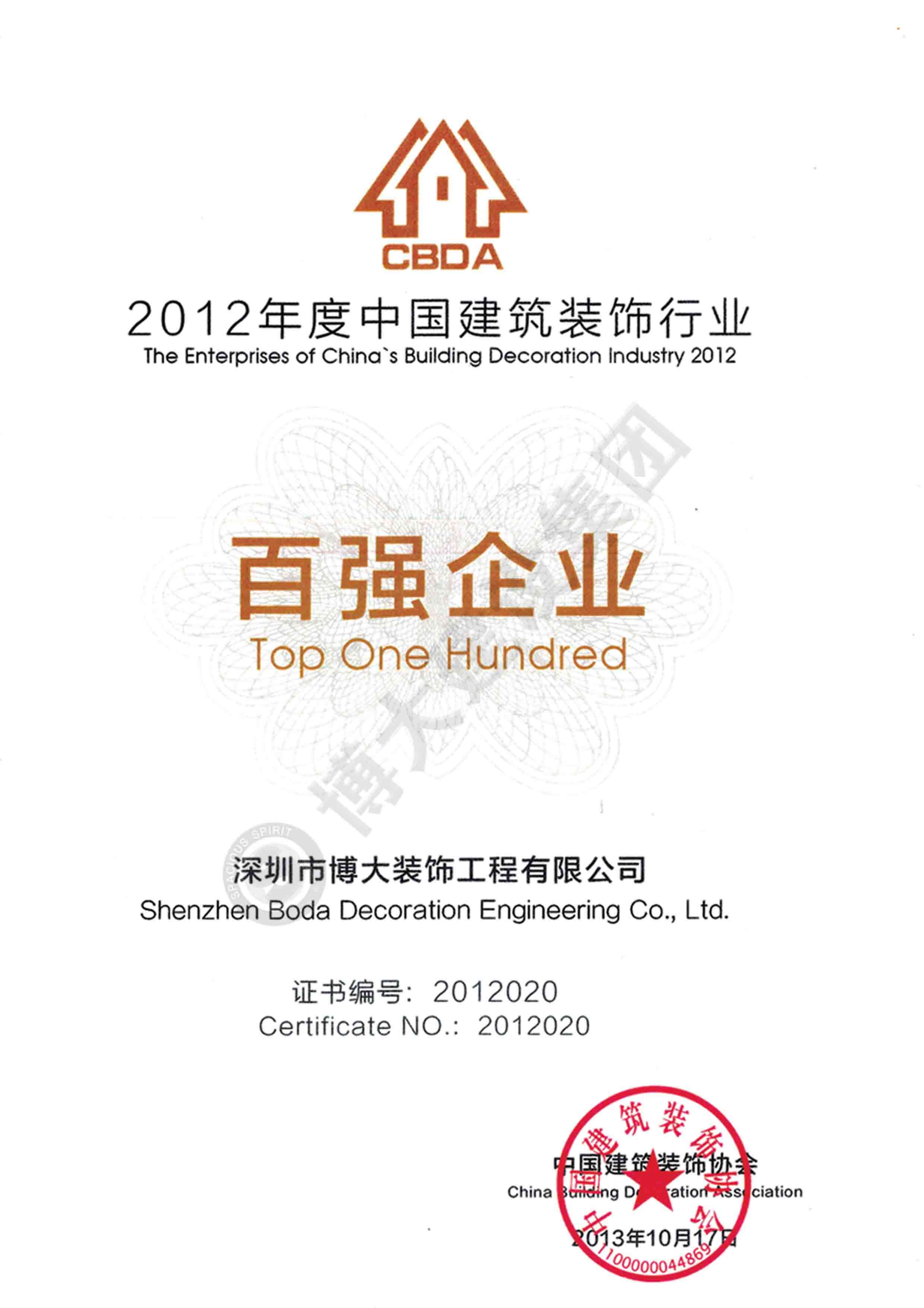 2012中國建筑裝飾行業百強企業