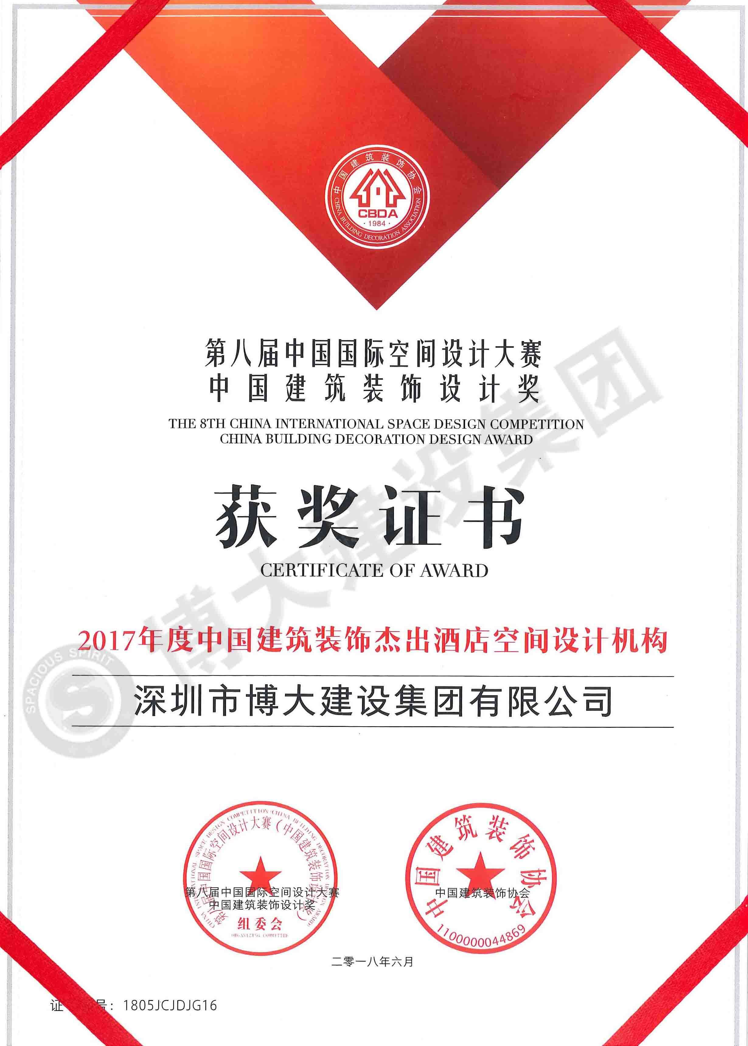 2017年度中國建筑裝飾杰出酒店空間設計獎