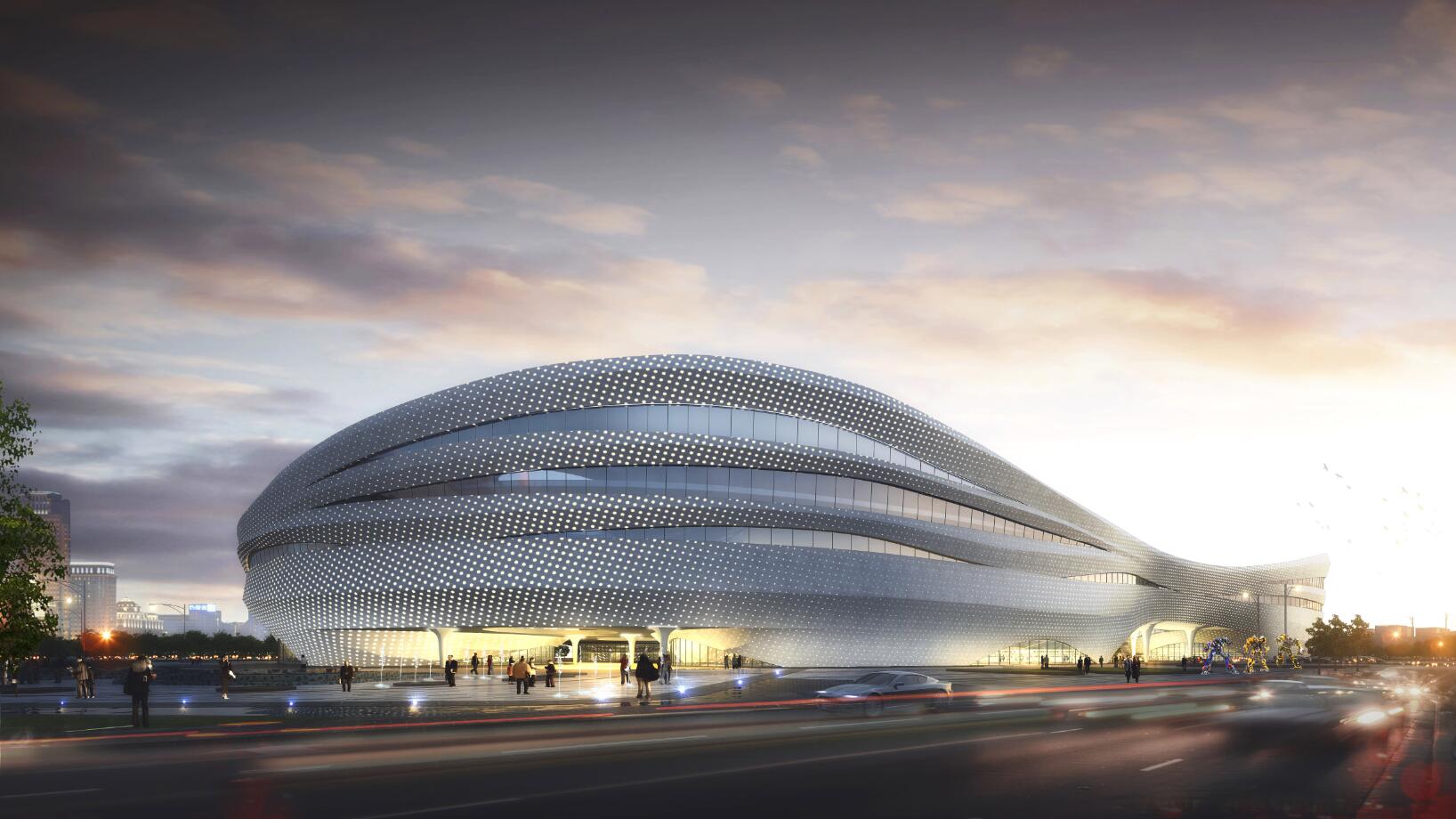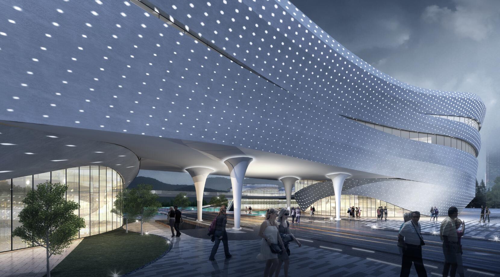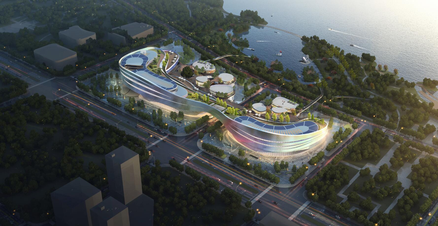 九江市鄱陽湖生態科技城科創中心幕墻工程位于江西省九江市廉溪區琴湖大道,幕墻面積約70000㎡,外立面為流線形開放式鋁板幕墻。