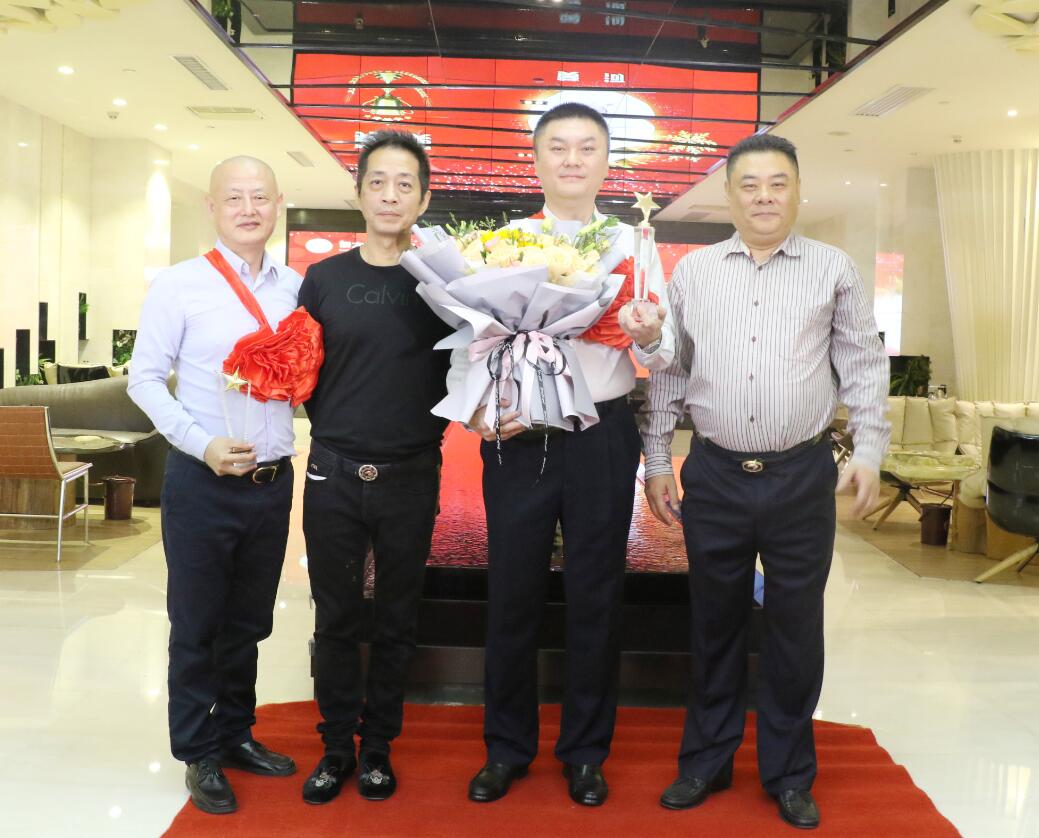 集團常務副總裁沈雁飛在集團業務拓展中做出突出貢獻,被授予優秀成果獎,獎勵10萬元。圖為徐凱宏董事長、黃河副董事長與獲獎者合影留念。