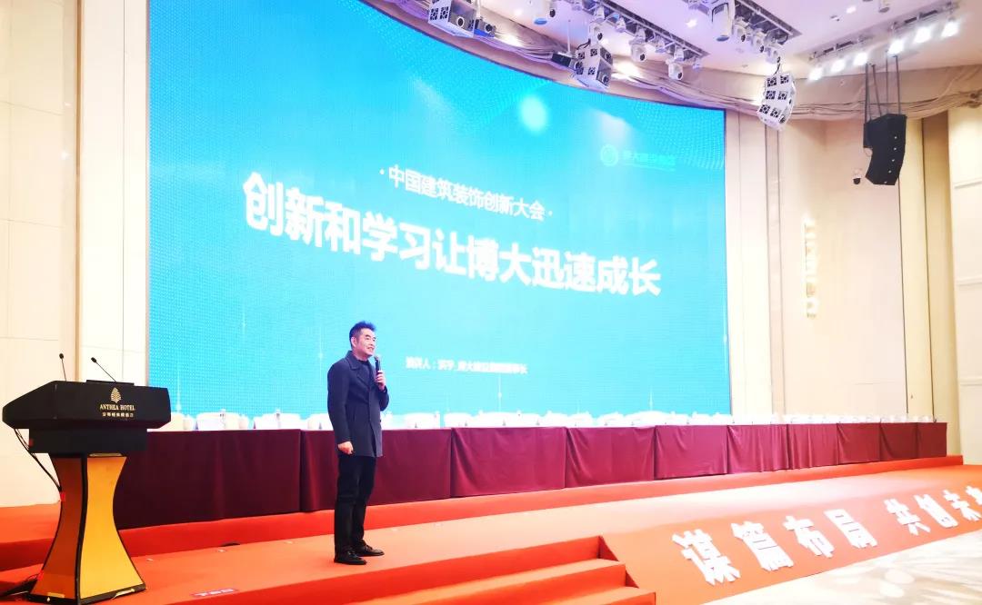 “創新和學習讓博大迅速成長。今天,我主要從三個方面為大家分享:管理模式創新,建立了利益共享的合伙人機制;文化創新,打造正能量的企業文化;持續學習,不斷地掌握和運用新的策略、工具和方法。”博大成為本次全國行業排名發布大會唯一一家建筑裝飾企業上臺分享發展經驗。董事長洪宇的精彩演講引起現場企業家的熱烈反響。