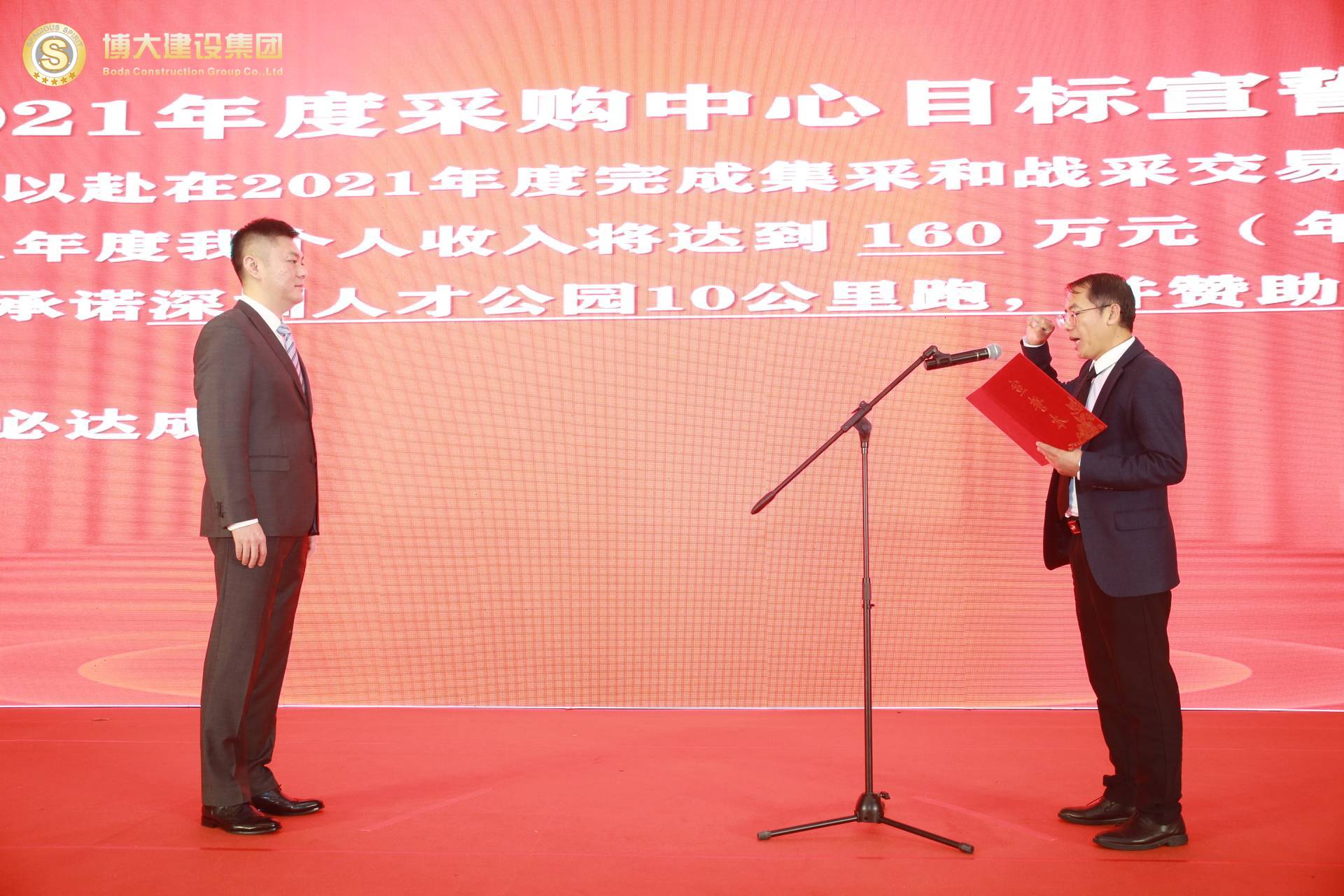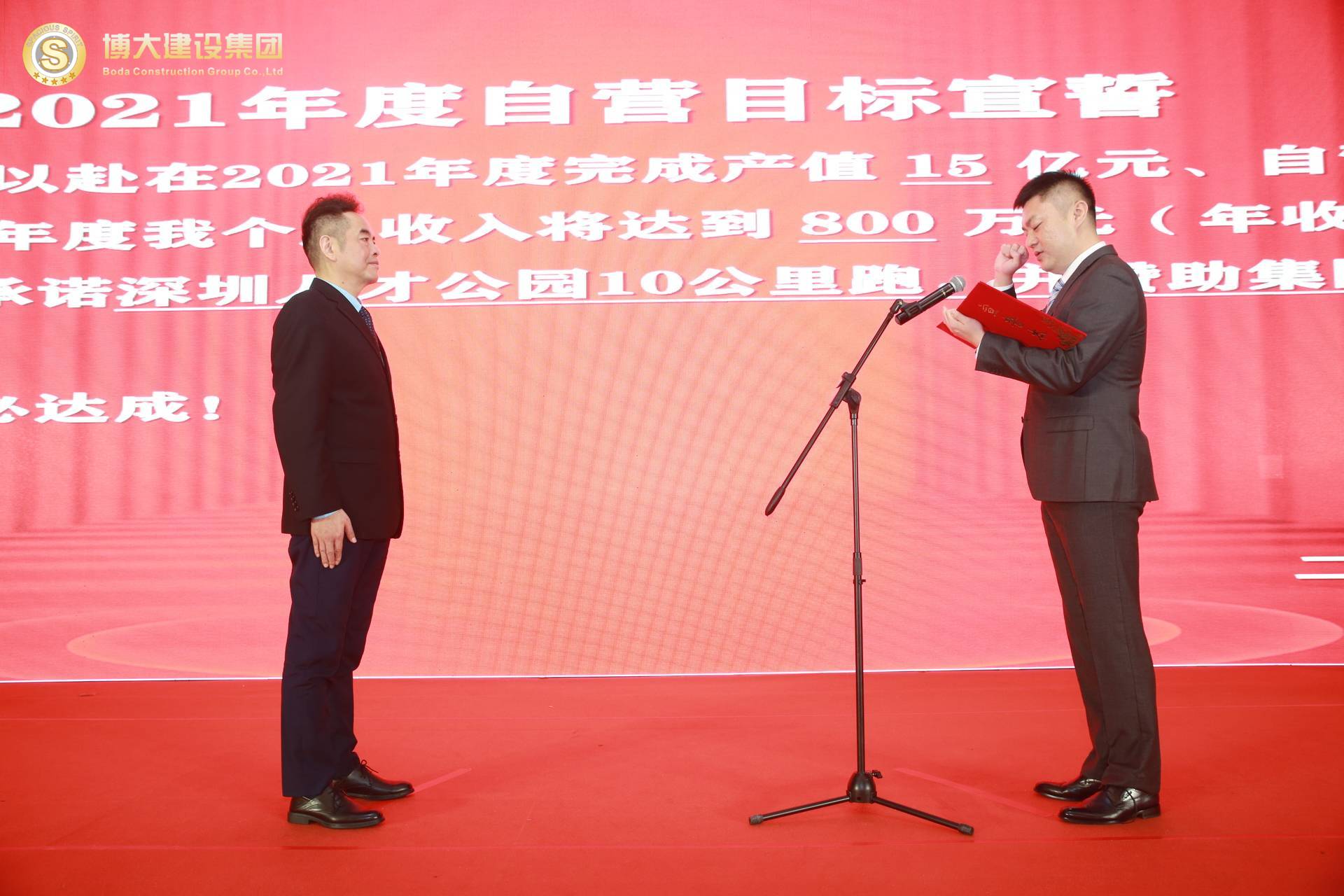 各戰(zhàn)區(qū)、中心、工廠負責人逐一上臺,在全體合伙人的見證下對2021年的部門目標和個人收入目標莊嚴宣誓,洪董代表集團對股東宣誓!